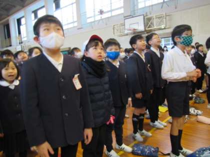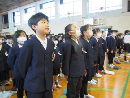 校歌斉唱!3学期は3番をみんなで歌います。「榎の歌に〜」元気いっぱいの歌声を聴かせてくれました♪