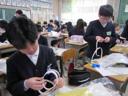 卒業制作として、ランプシェードの作成に取り組んでいます。和紙を使ったおしゃれなランプシェードです。みんな、楽しそうに取り組んでいました♪