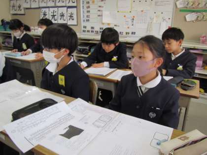 国語の学習が始まりました。今日はどんなことを学習するのかな。先生のお話をしっかり聞いています♪