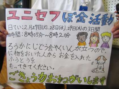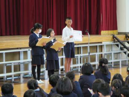 令和6年度児童会役員選挙の結果発表、明日から行われる募金活動のお知らせがありました♪
