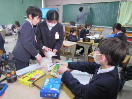 早いと速い、熱いと暑いと厚い、…同じ音でも違う意味の言葉についてみんなで考えていました。辞書を使って学習を進めています♪
