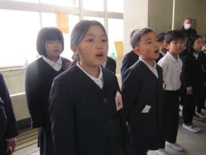 3時間目に実施予定の「お別れ集会」に向けた最後の練習!みんなでしっかり声を出して準備を整えていました♪