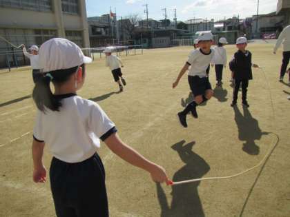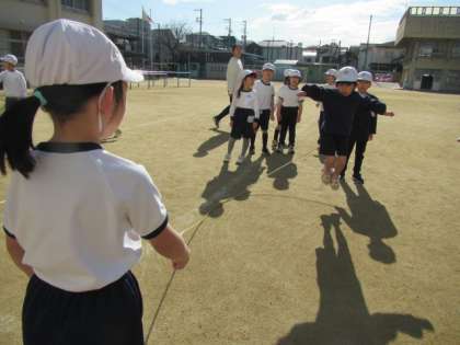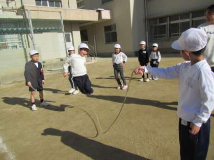 おおなわに挑戦しています。回すのも飛ぶのもどんどん上手になっています♪