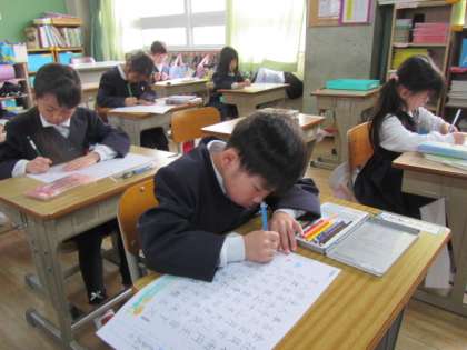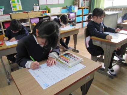 2月27日(火) 1年生書写「いい姿勢で」♪