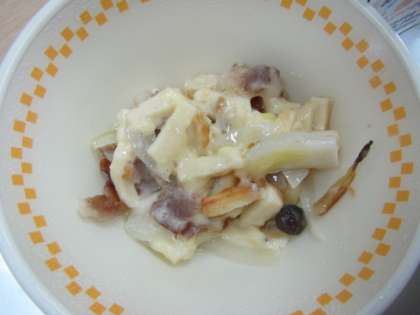 今日のグラタンには、高野豆腐が入っています。高野豆腐は、豆腐を凍らせてから乾燥させて作ります。高野山で作られたことから、高野豆腐という名前がついたそうです。