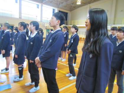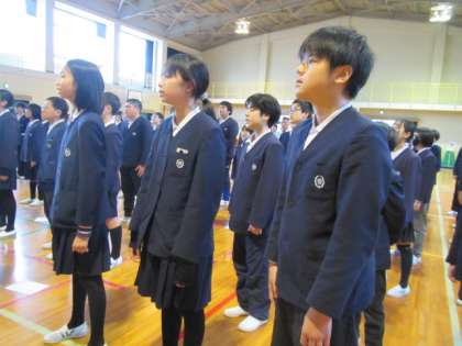卒業式で歌う歌の練習中です。体育館いっぱいの6年生のきれいな歌声が響き渡っていました。とてもいい雰囲気です♪