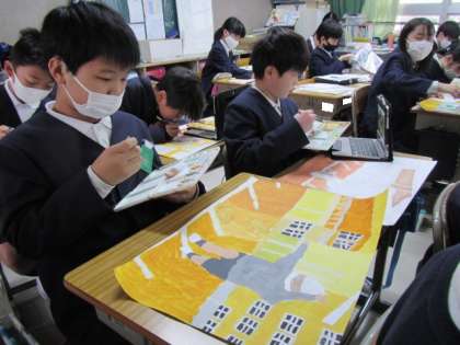 3月6日(水) 5年生図工「ダイナミックジャンプ」♪