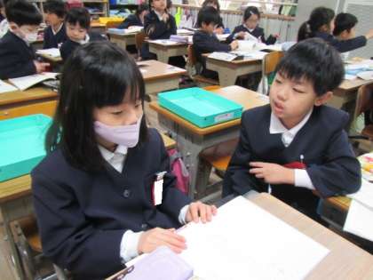 この一年の学校生活を振り返り、思い出深いできごとを作文します。どんな一年だったかな。みんなで思い出を語り合っていました♪