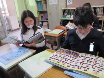 卒業アルバムが配られました。みんなとってもいい表情で見入っていました。卒業がますます間近に感じられますね♪
