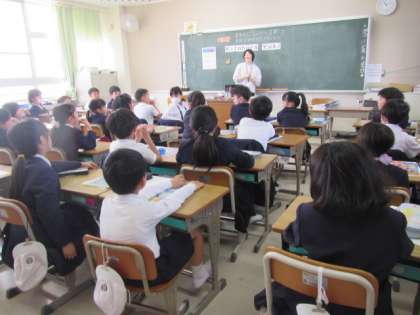 先生の自己紹介クイズです。みんなで楽しそうに取り組んでいました♪