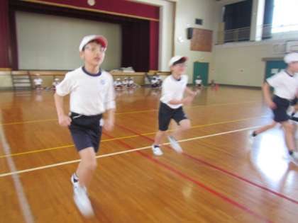 持久力を測定する「20mシャトルラン」に取り組んでいました。無理ない範囲でがんばってね♪