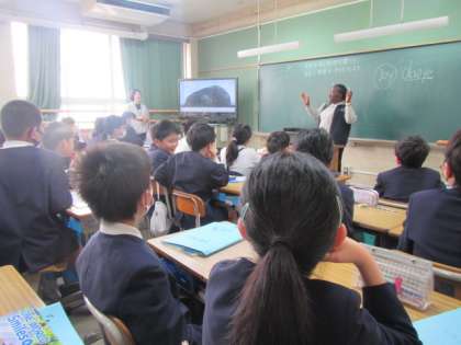 今年度のネイティブの先生が来てくださいました。みんな、自己紹介を興味深そうに聞いていました♪
