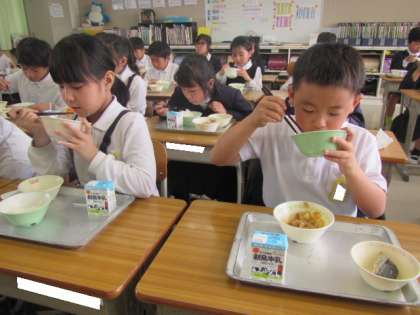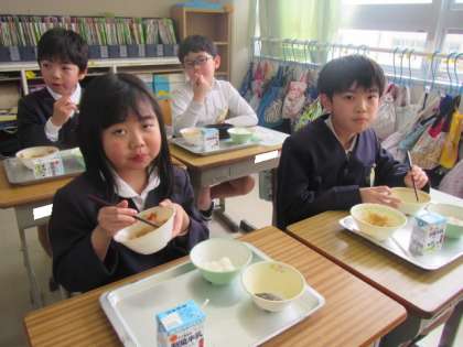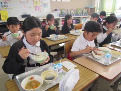 給食の時間が始まりました。今日もおいしくいただきましょう♪