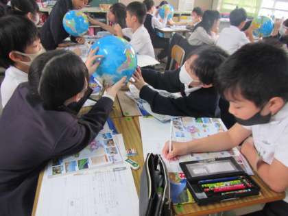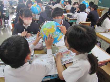 4月16日(火) 5年生社会「地球儀を見て」♪
