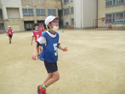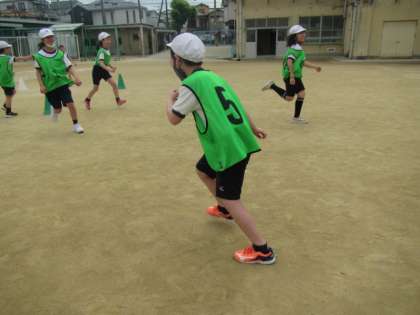「四色おにご」に取り組んでいました。走り回ることももちろん大切ですが、かけひきもこのおにごっこのおもしろさの一つです。
