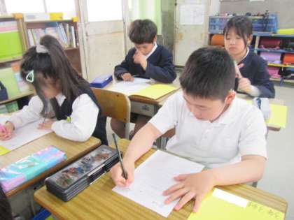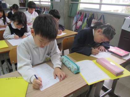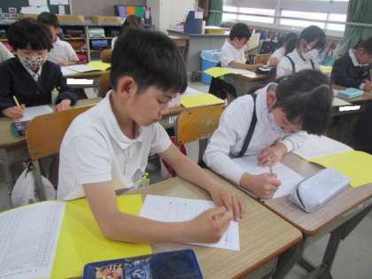 今日の朝の時間は「学習タイム」です。算数の計算プリントに取り組んでいました♪