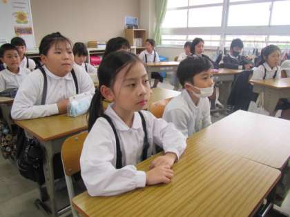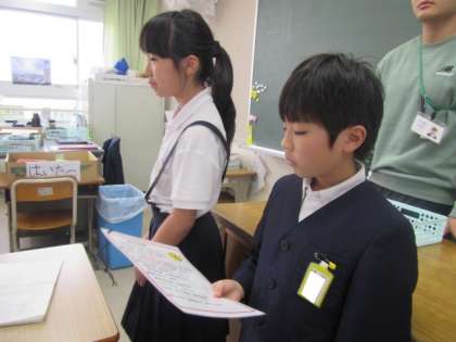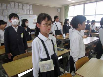 「おはようございます」元気に朝の会が始まりました。日直さんがしっかり進めてくれています♪