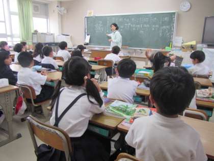詩「どきん」の学習を生かして、自分たちも詩を書いてみましょう。みんな、先生の話をいい表情で聞いています♪