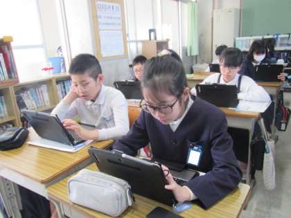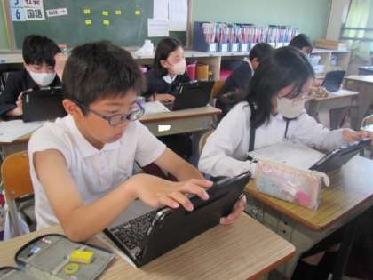 今日は全国学テのアンケート調査でした。タブレットを使って実施します♪