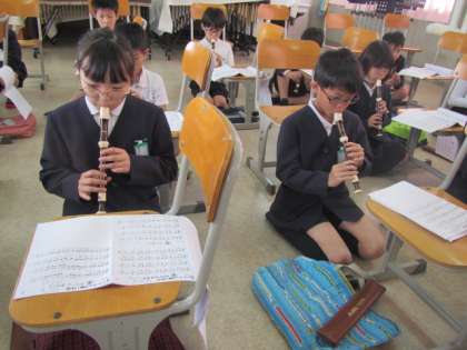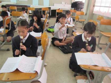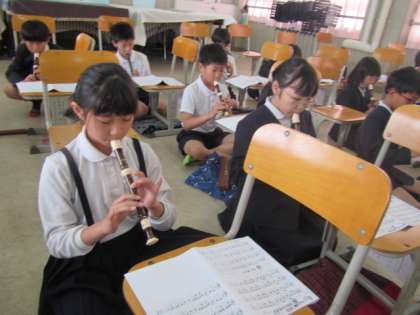 聞き覚えのある音楽を5年生の子どもたちが軽快に演奏していました。グリーングリーンです♪
