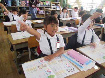 今日は「6」の学習をしました。書き方をみんなで共有しています♪
