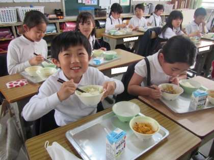 今日はどんぶりの給食!みんな、おいしそうに頂いています♪