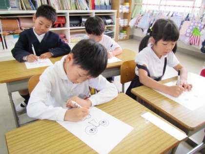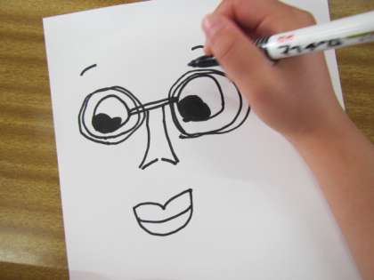 先生の顔を描こう!みんなノリノリで取り組んでいました♪