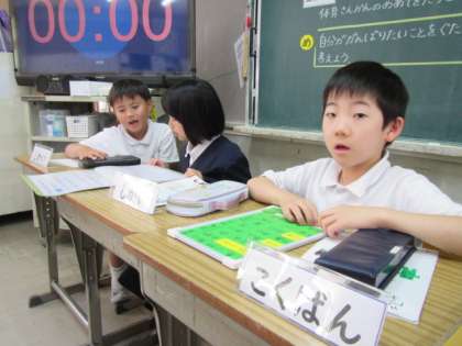 体育参観の目標を達成するために、自分たちが具体的にがんばることを話し合っていました。司会や黒板係がどんどん会議を進めてくれています♪