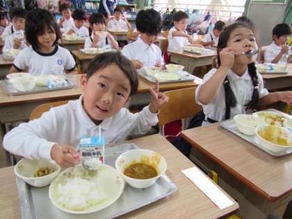 今日は大人気メニュー、カレーでした。みんなおいしそうに頂いています♪
