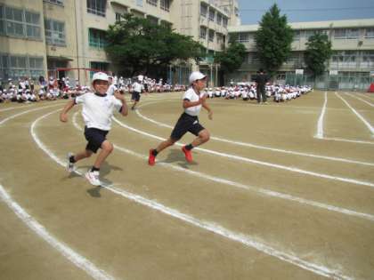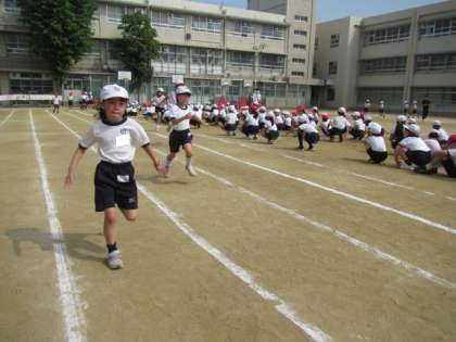 体育参観に向けた練習が始まりました。明日の本番と同じ時程で進めています。