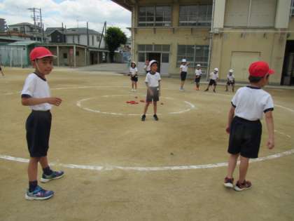 サークル宝おにの学習です。相手のスキをつき、タッチされずに中央の島に到着できるようがんばります♪