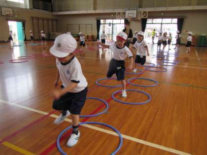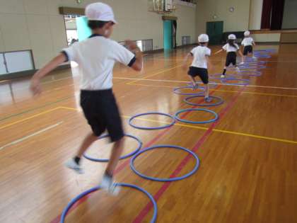 今日のウォーミングアップはわくわくサーキット!みんな、夢中になって取り組んでいます♪