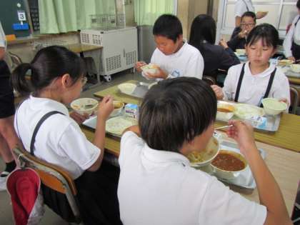 今日の給食に使われているニンジンの色の成分はカロテンといい、体の中でビタミンAに変わります。ビタミンAは目のはたらきをよくしたり、のどや鼻の粘膜を丈夫にしたりするといわれています。