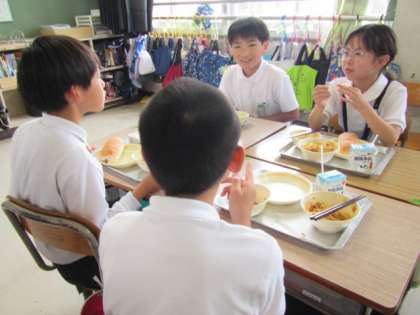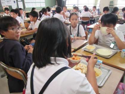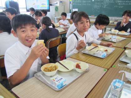 給食の時間が始まりました。今日もおいしくいただきましょう♪