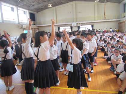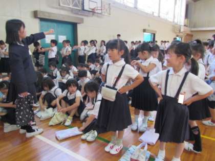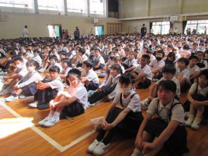 今日は、月曜日ですが全校朝礼があります。プールのお話があるので特別です。