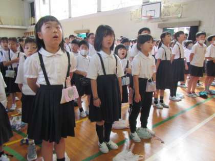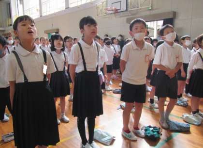 校歌斉唱!元気いっぱいの歌声が体育館いっぱいに広がりました♪