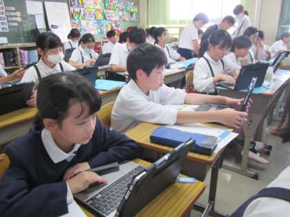 大すきな榎のまちの、特にお気に入りの場所はどこかな。そこではどんなことができるのかな。それぞれ、タブレットを使った調べ学習に取り組んでいました♪
