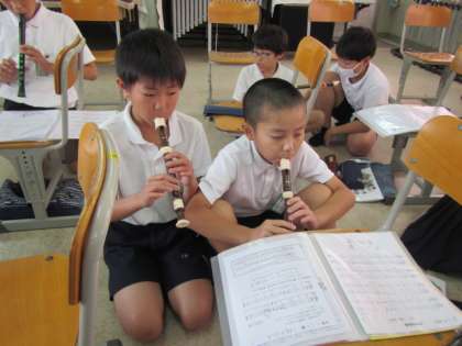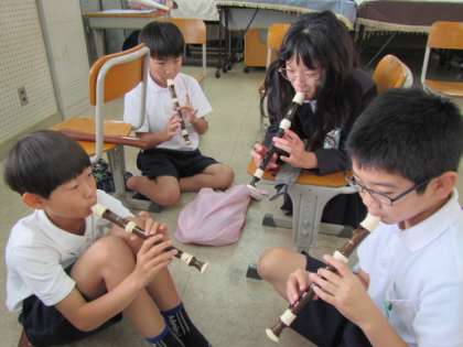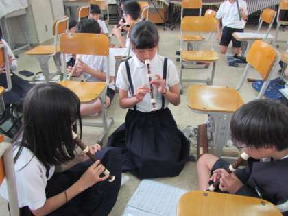 短調の曲「小さな約束」の練習に取り組んでいます。グループに分かれて、集中して演奏しています♪