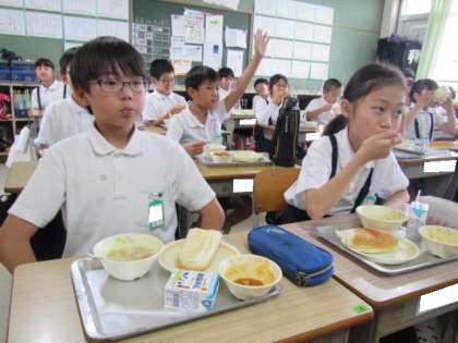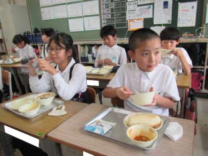 金曜日の給食風景です。みんなとてもいい表情で過ごしていました♪