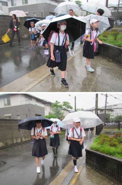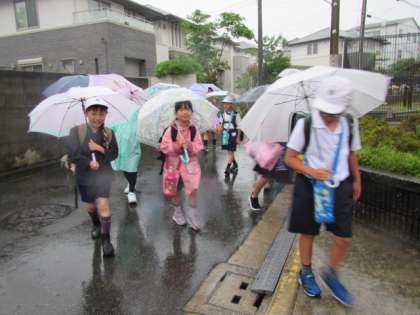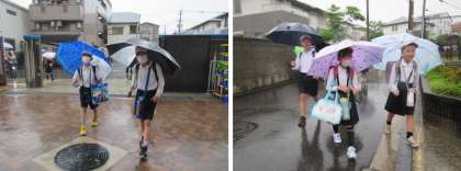 強い雨の中、元気に登校してきてくれています♪