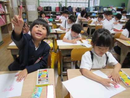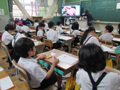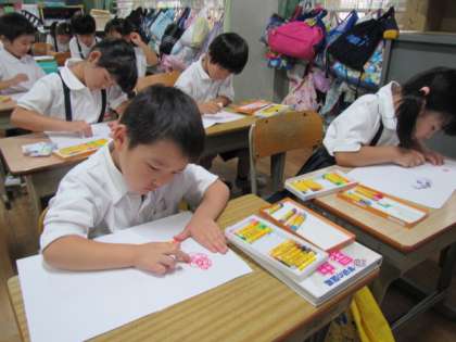 6月18日(火) 1年生図工「アジサイ」♪