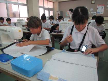 ミシンを使っての作業、がんばっていました。機械を使う作業は神経をつかいます。みんな慎重に取り組んでいました♪