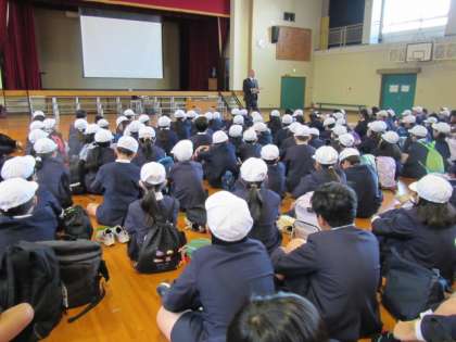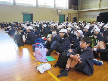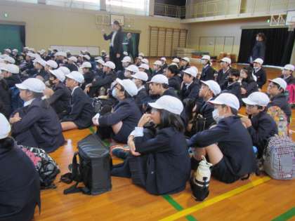今日はいよいよ連合音楽会当日です。体育館に集まり、先生からのお話を聞いています♪