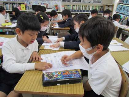 物語「まいごのかぎ」の学習です。ペアで本文を読み深めています♪