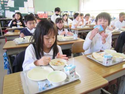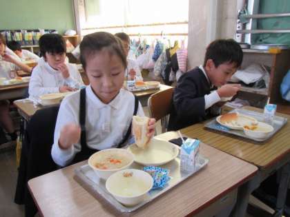 給食の時間が始まりました。今日もおいしくいただきましょう♪