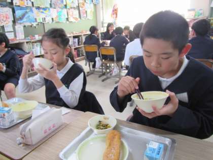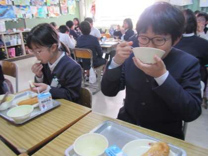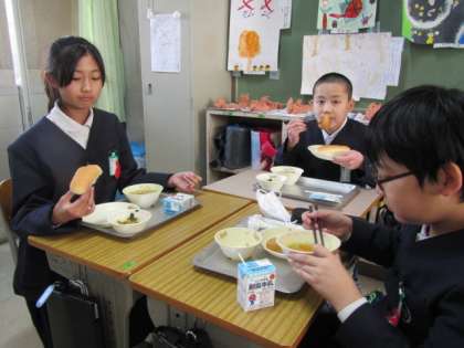 給食の時間が始まりました。今日もおいしくいただきましょう♪