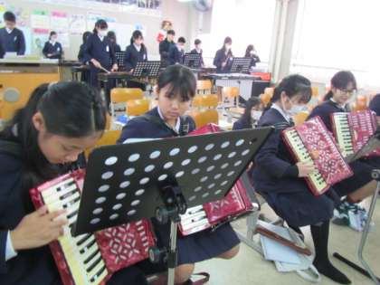 クラス合奏の練習に取り組んでいます。曲は自分たちで選びました♪