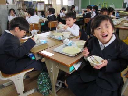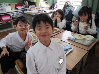 給食の時間が始まりました。今日もおいしくいただきましょう♪