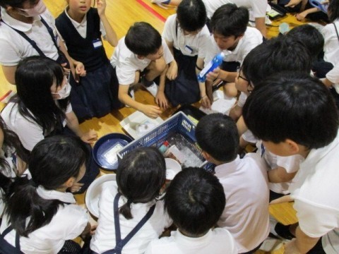 体育館で,4年生が堺市からの出前授業を受けていました。