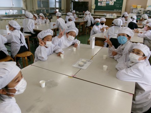 3年生はコープの出前授業がありました。国語科「すがたを変える大豆」の関連として勉強しました。実際に豆腐作りをしていただきました。
